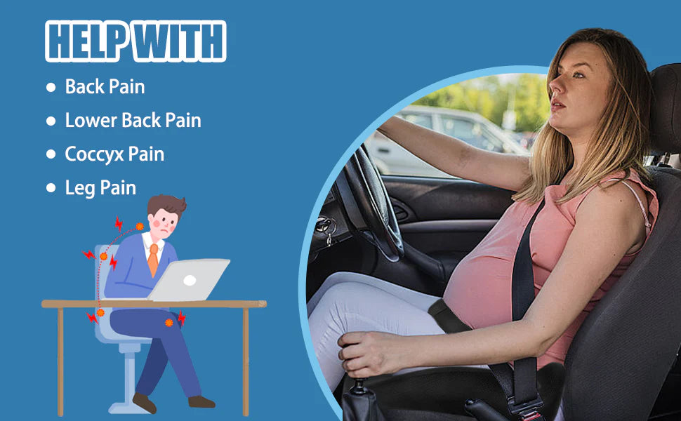 The pregnancy car seat cushion keeps lap belt on hips and pelvic bone. Designed for pregnant women, individuals with big belly, or those recovering from abdominal surgery.